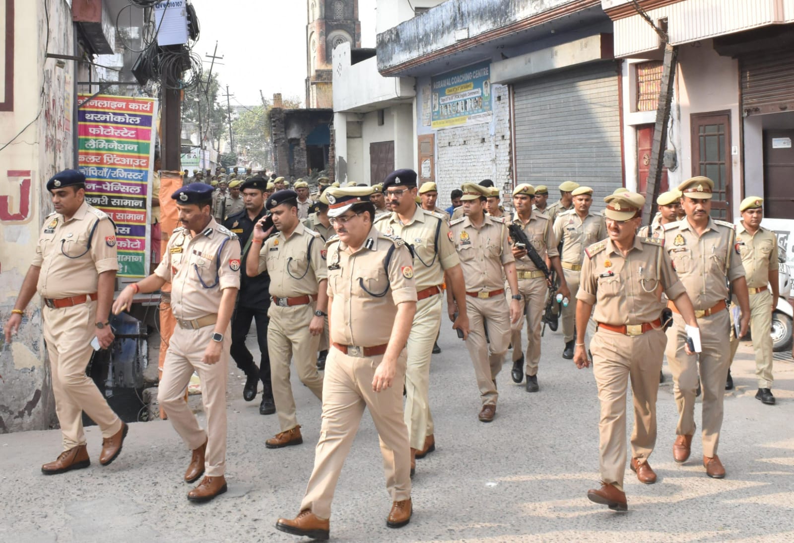 फ्लैग मार्च की शुरुआत कुतुबखाना से हुई, जो बड़ा बाजार, आलमगीरी गंज जैसे भीड़भाड़ वाले इलाकों से होता हुआ साहू गोपीनाथ स्कूल तक पहुंचा। मार्च के दौरान पुलिस अधिकारियों ने लोगों और व्यापारियों से शांति और आपसी सौहार्द बनाए रखने की अपील की।